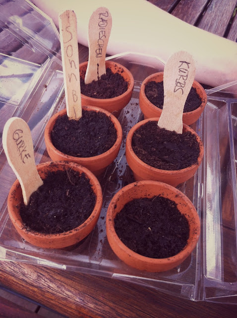 We planted cucumber, radishes and pumpkin. And sunflowers, but they refused to grow. Oh well.
